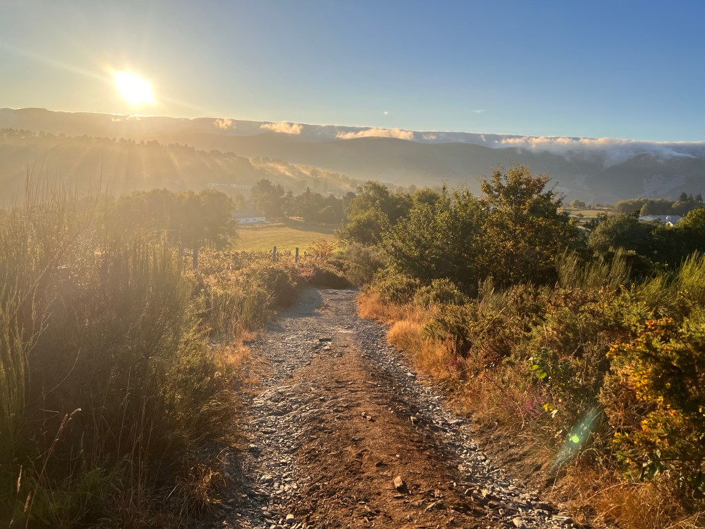 Way back in the early days of my walk my fellow pilgrim Donald commented that ‘we always start in a hole’. Today reminded me of that comment and those early days. I started in a Valley and as I left town I had to climb up and out. The views to the hill and the light were beautiful and rivalled those early days out of Le Puy.