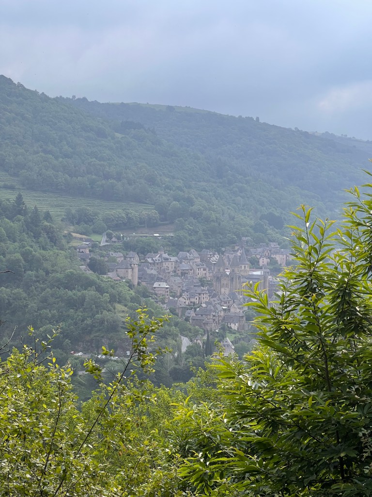 Why am I walking up all these hills? Many reasons. I am enjoying the challenge of the steep inclines, and I love looking back and seeing where I’ve been. Today I also had the privilege of descending down into Espalion and Estaing. It was breathtaking.