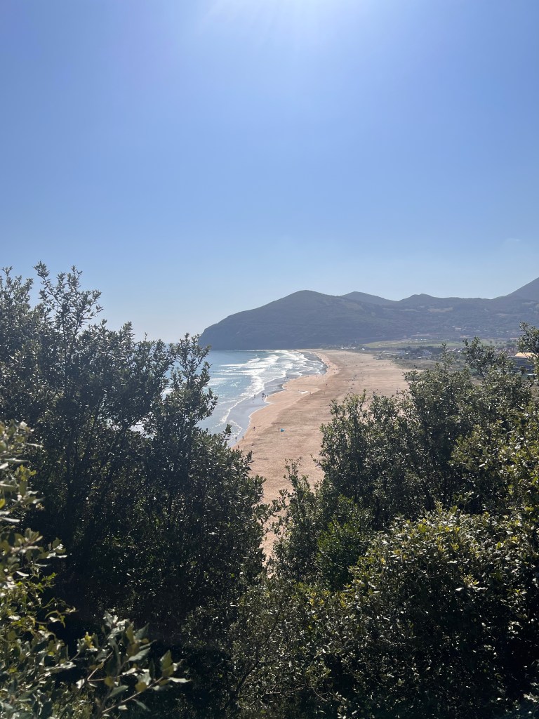 I left before the sun was up again this morning and I was straight into the forest. There was a time when I would have been too scared to walk into the dark, not anymore. After a couple of kilometres I was out and onto the road and it started raining. Somehow it felt right that there was some rain on my last day of walking. Luckily I wasn’t on the road for long. I was back on the dirt tracks and very quickly I had my first views to the ocean. But there was still a long way to go.