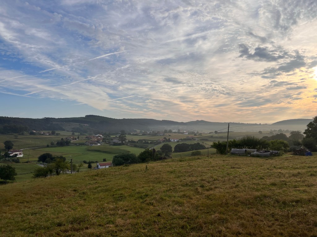 I had to walk for 13km before I would reach the coast and another 15km to the town of Finistère. As I got closer to the ocean the sky started to clear, the sun came out. Those last 15km were some of the hardest I’ve done. The terrain was easy but I was tired and I felt every step. I was slow.